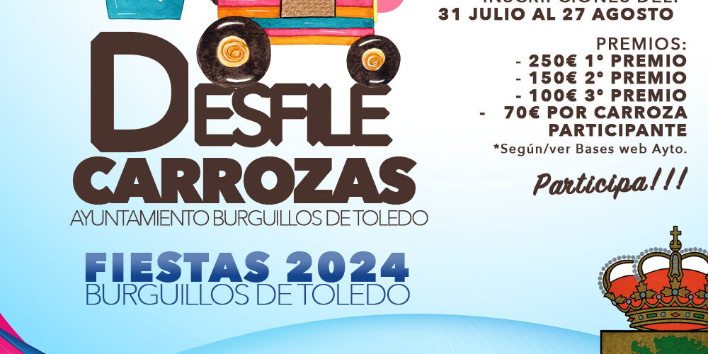 Queremos anunciaros que el próximo 30 de Agosto celebraremos el tradicional Desfile de Carrozas por motivo de las fiestas patronales 2024.